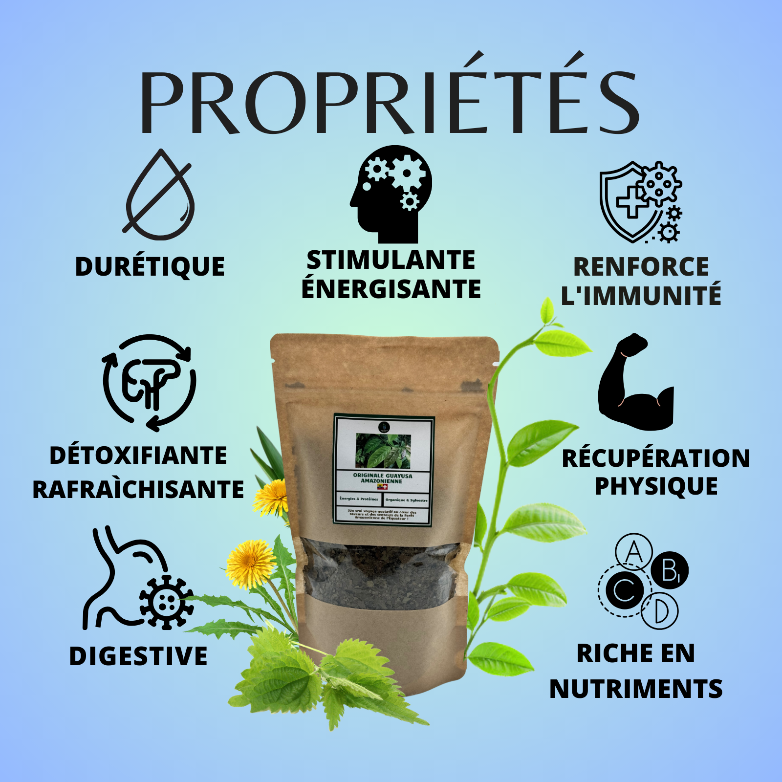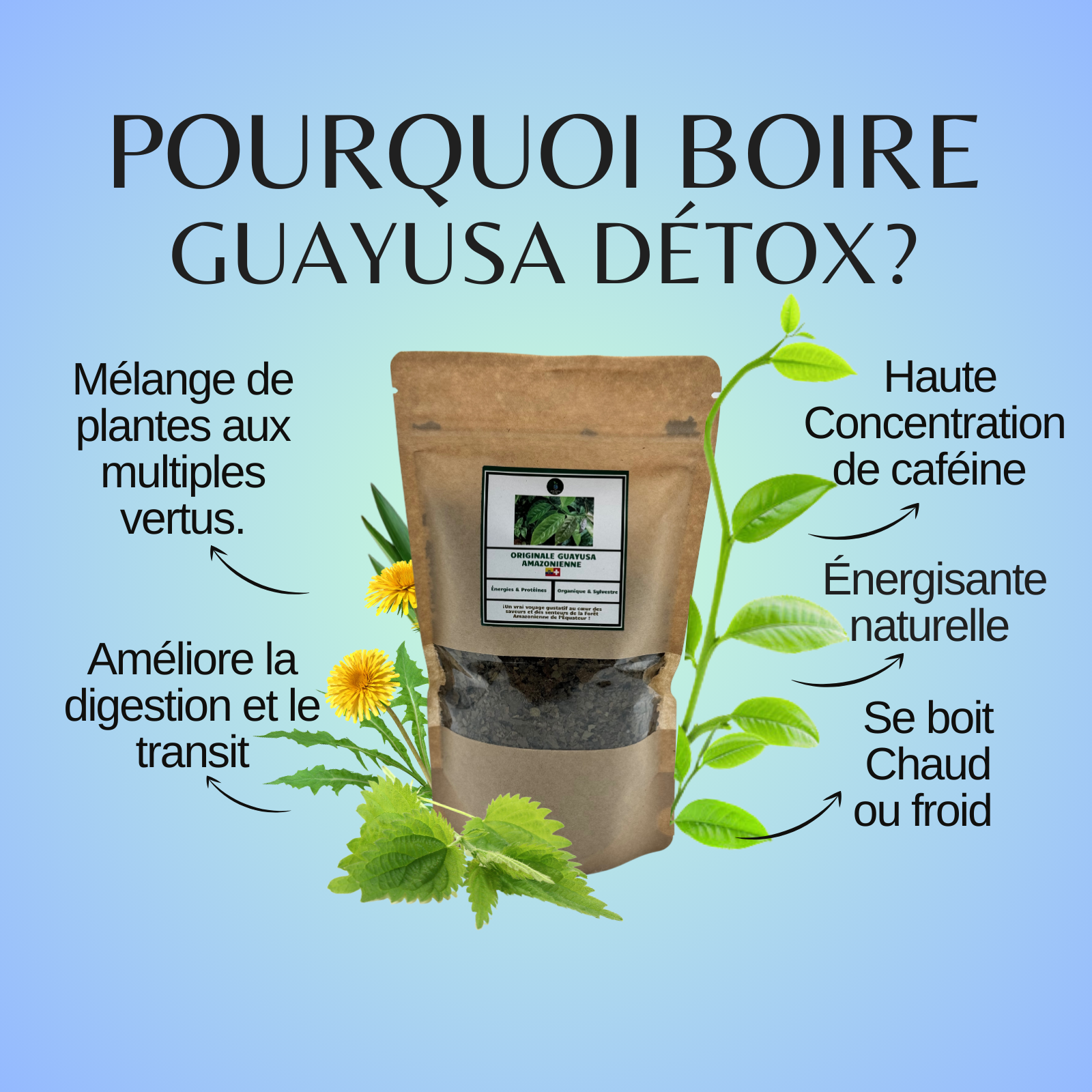 La Guayusa « Detox « , est notre meilleure combinaison du pouvoir stimulant de l’Ilex Guayusa d’Équateur avec les propriétés dépuratives des herbes naturelles locales comme l’ortie et le pissenlit. Le mélange d’herbes a été adouci par l’ajoute de la citronnelle et d’agrumes. C’est une composition douce et agréable pour les papilles gustatives.