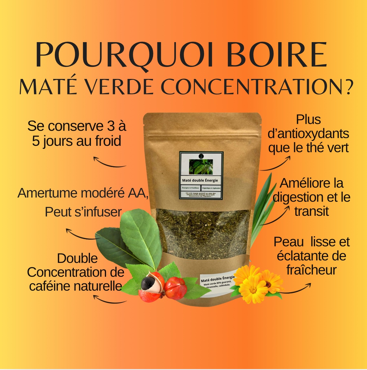 Mate Verde & Guaraná, avec un taux élevé de caféine naturelle, c’est un excellent énergisant pour les personnes sensibles à la caféine. Elle apporte de l’énergie tout en douceur pour étudier, travailler et faire du sport toute au long de la journée, de plus, les feuilles de Maté Verde contiennent plus d’antioxydants que le thé vert !