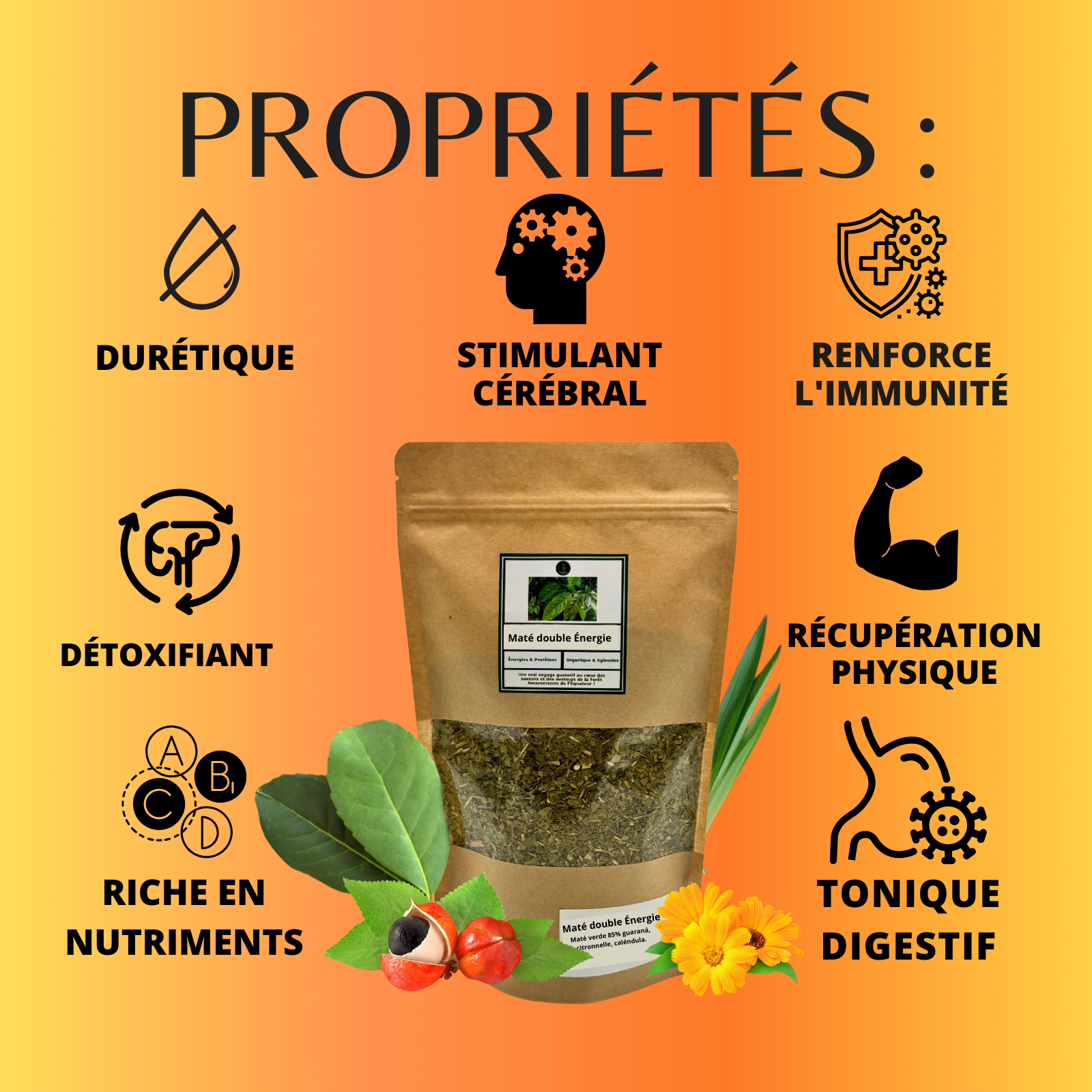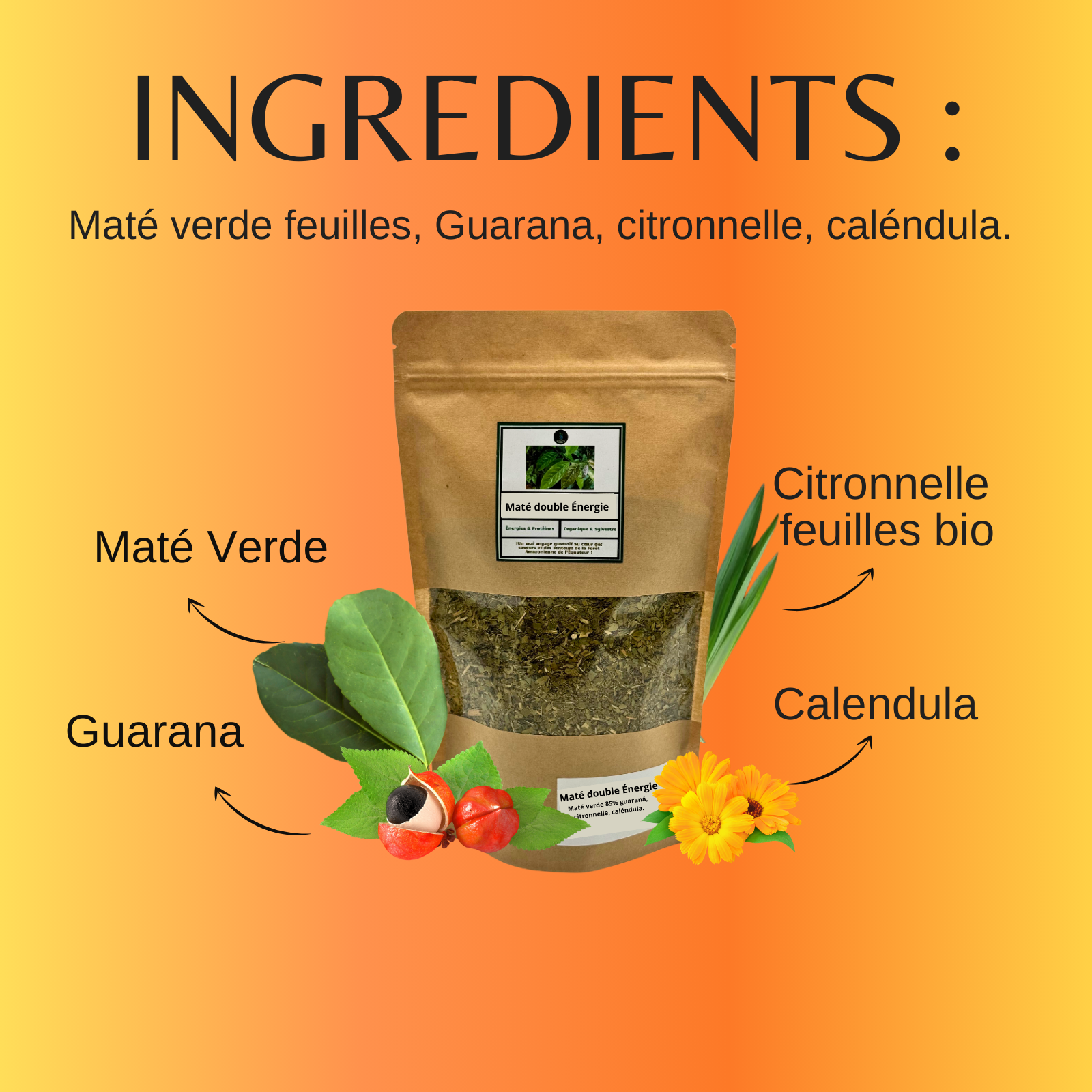 Maté & Guaraná, contient une double dose d’énergie (elle contient 3 % de caféine), d’antioxydants et de minéraux ! Ilex Maté est un substitut sain parfait pour les boissons énergisantes nocives et le café.