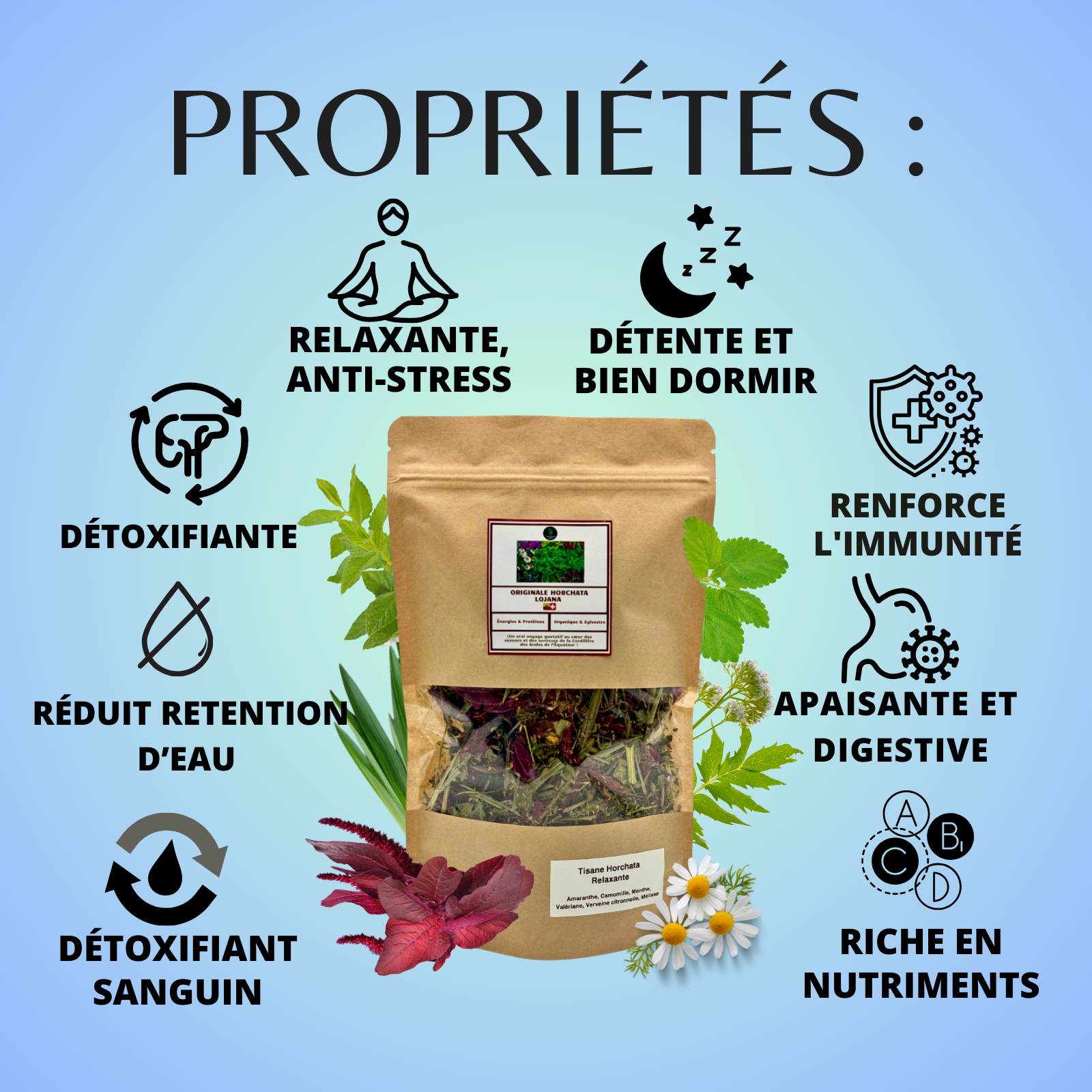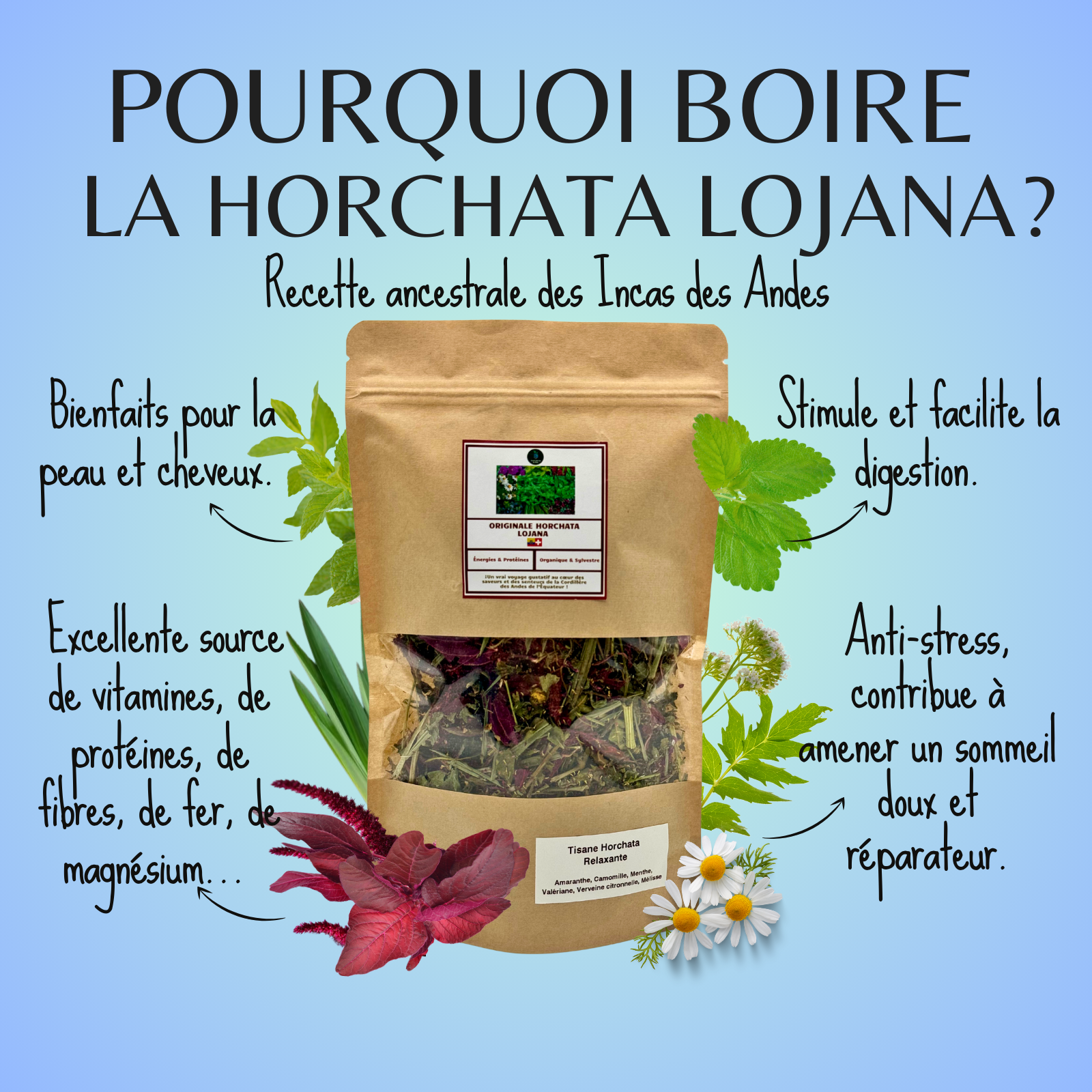 L’horchata des Andes a des propriétés anti-flammatoires et anti-stress, en plus d’être hydratante, digestive, énergisante , est un tonique cérébral.
